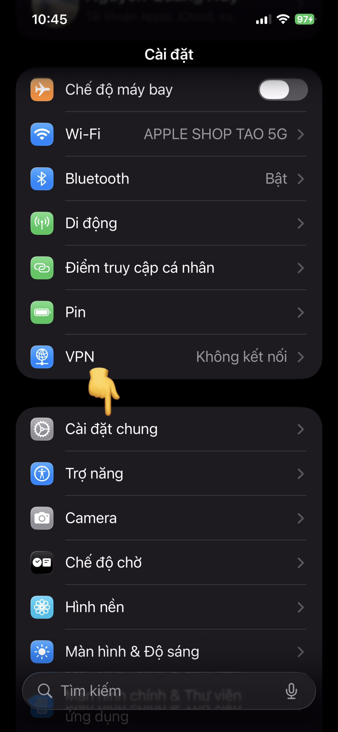 Bước 1: Truy cập vào Cài đặt (Settings).