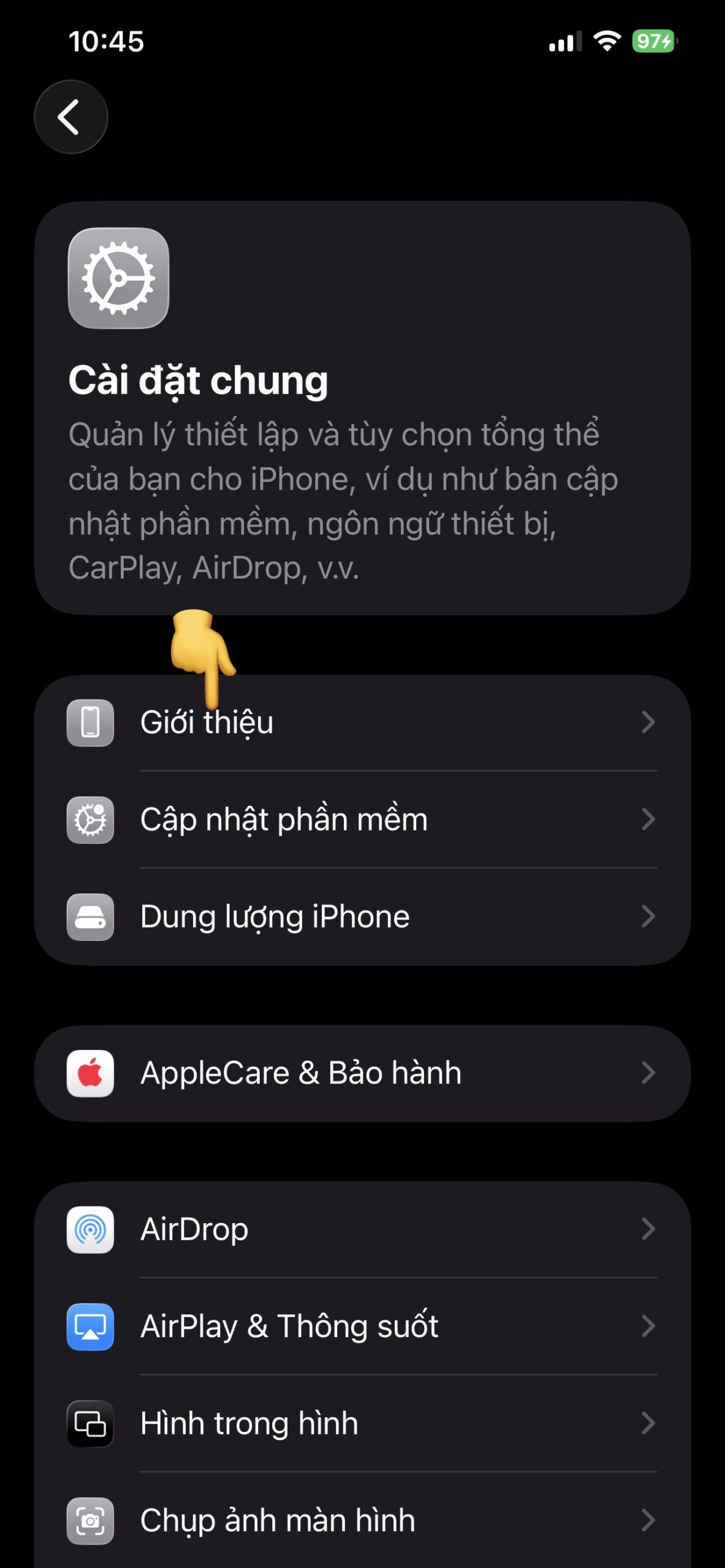 Bước 2: Chọn Cài đặt chung (General).