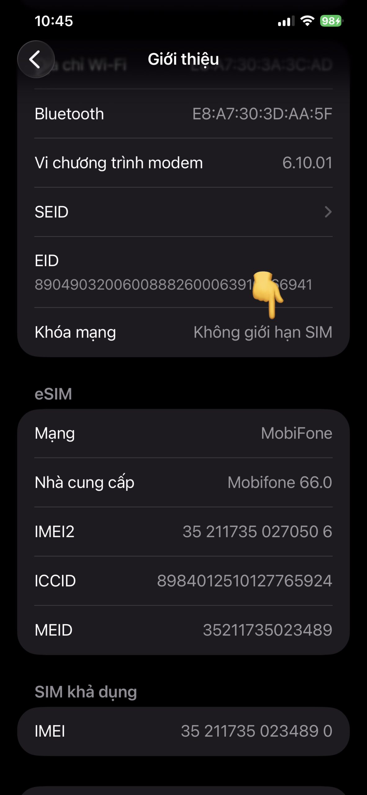 ⚠️ Nếu hiện dòng chữ “SIM bị khóa” (SIM locked): Đây chắc chắn là iPhone Lock.