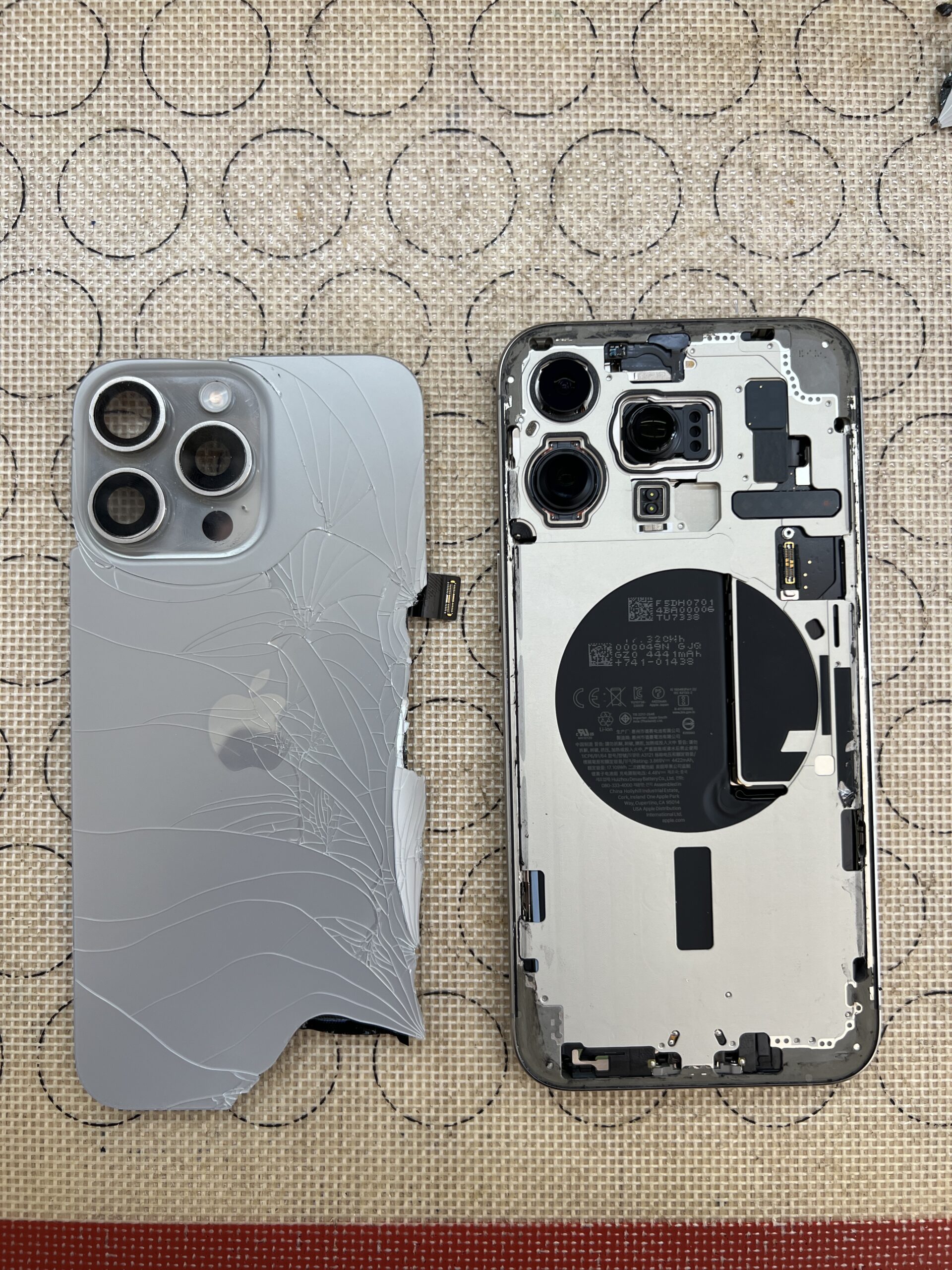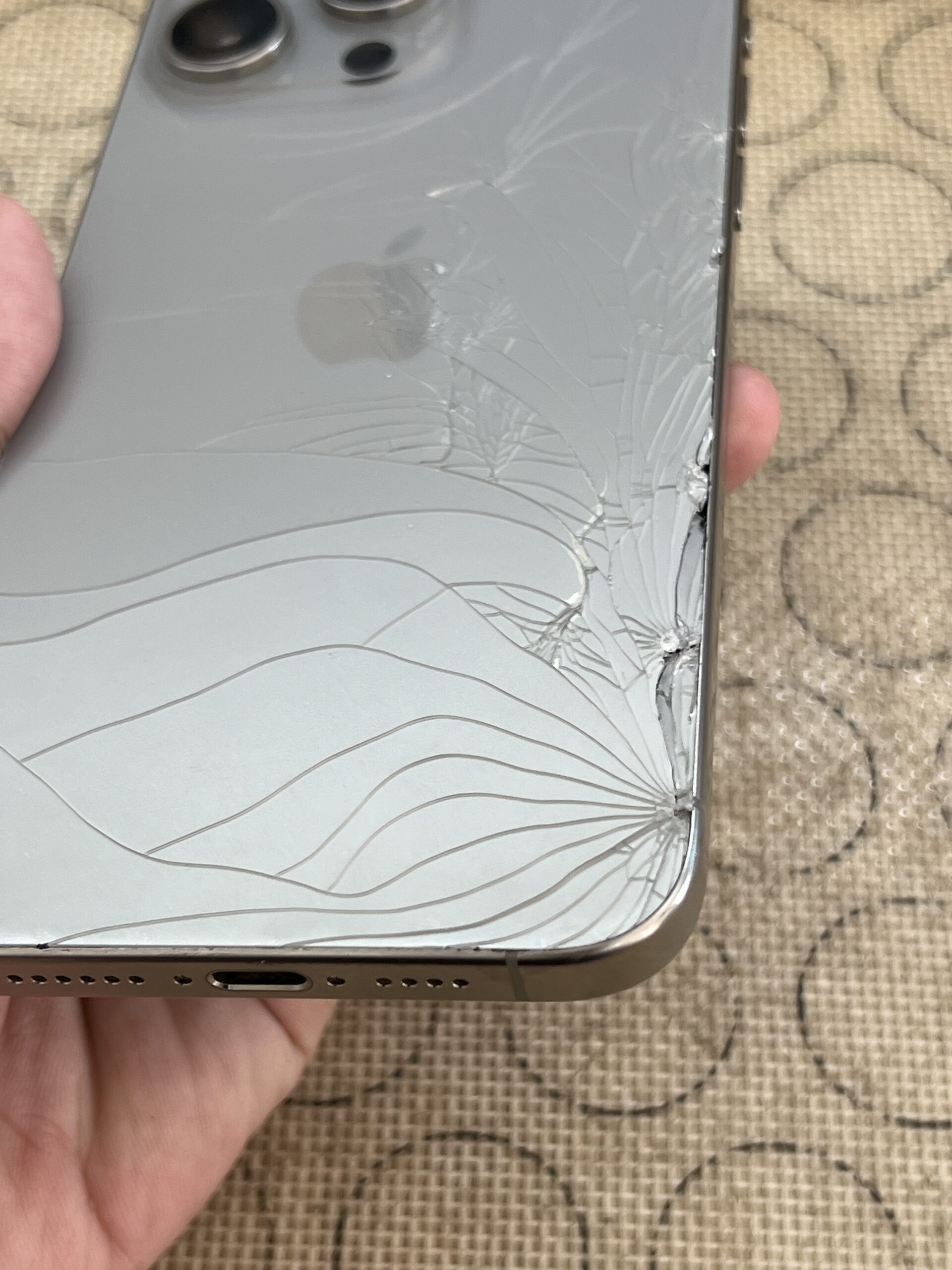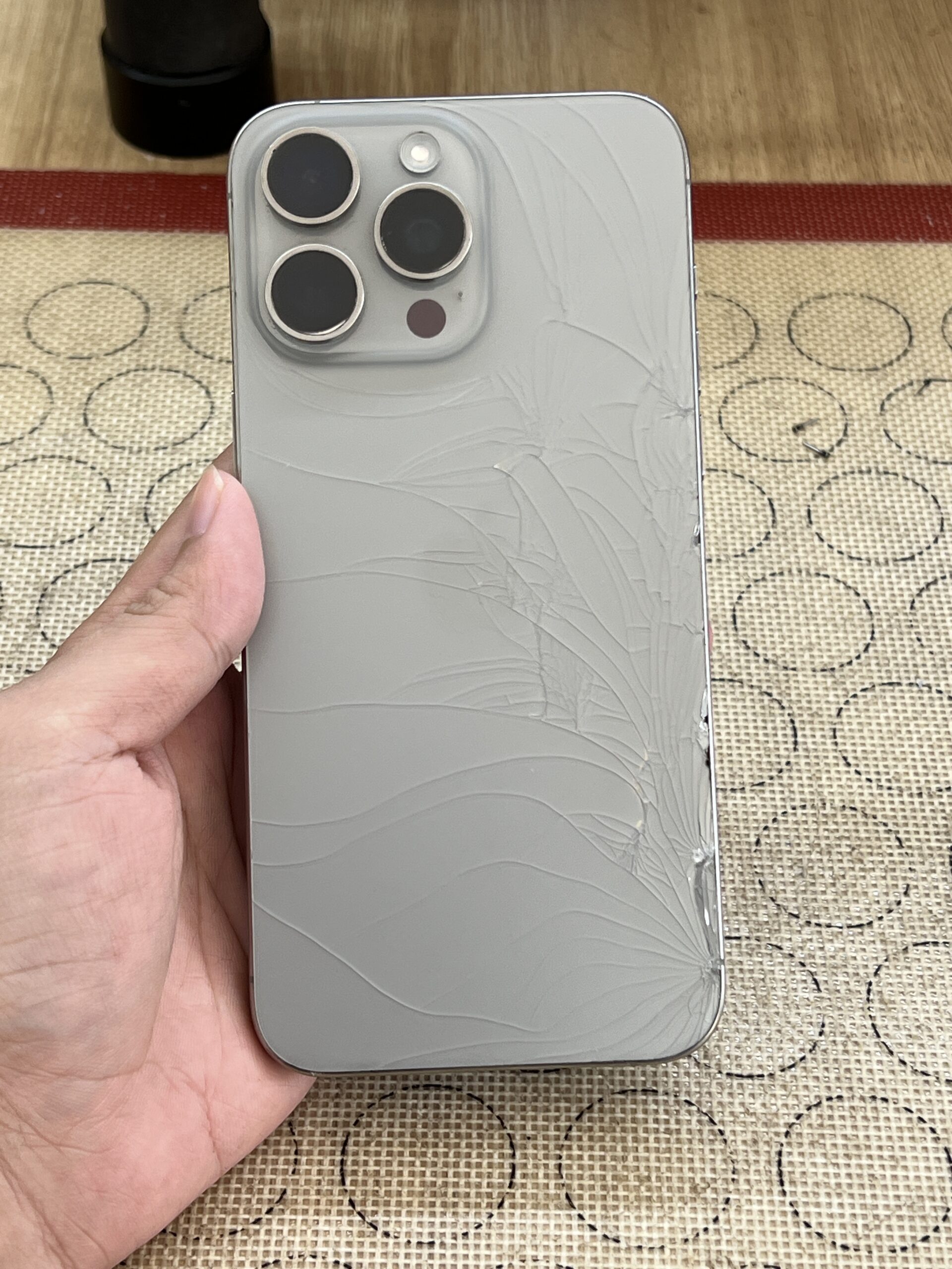 Kính lưng của iPhone 15 Pro Max được hoàn thiện bằng chất liệu kính cường lực cao cấp, kết hợp khung titan chắc chắn mang đến vẻ đẹp hiện đại và cực kỳ sang trọng. Tuy nhiên, dù bền đến đâu, kính vẫn có thể bị nứt vỡ khi va chạm mạnh. Một vết nứt nhỏ trên kính lưng không chỉ làm mất tính thẩm mỹ mà còn khiến người dùng dễ bị cứa tay khi sử dụng.
